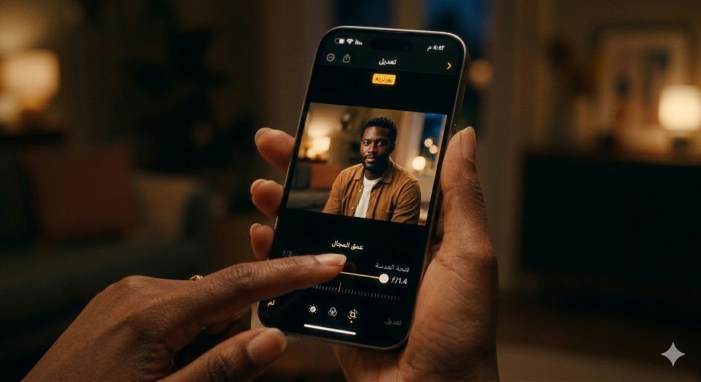 السر يكمن في “نمط البورتريه” (Portrait Mode). يمكنك تعديل “عمق المجال” (f-stop) حتى بعد التقاط الصورة في تطبيق الصور، مما يسمح لك بالتحكم في مدى ضبابية الخلفية.